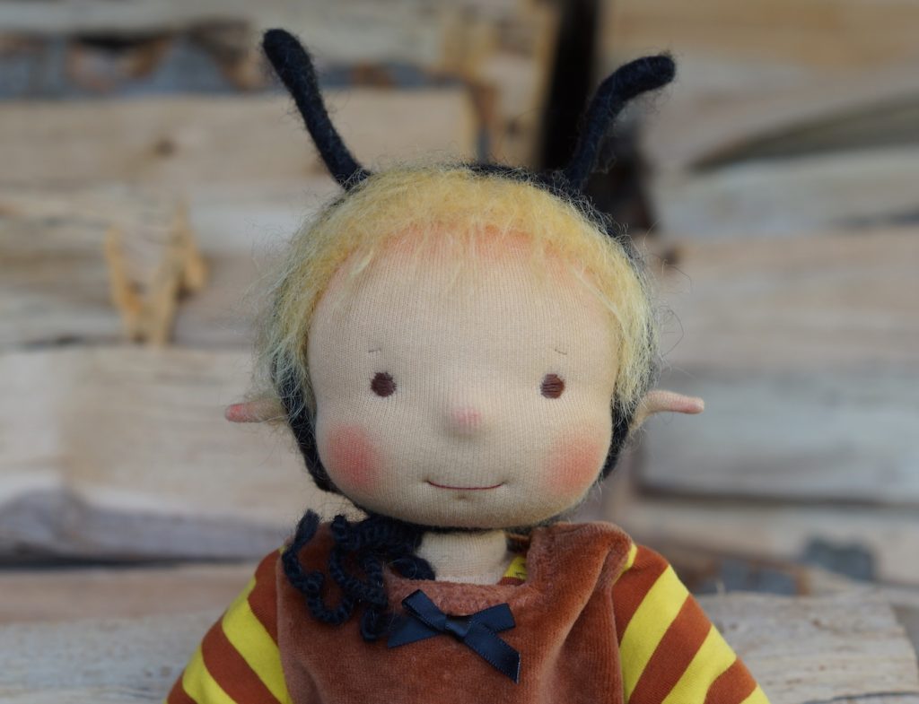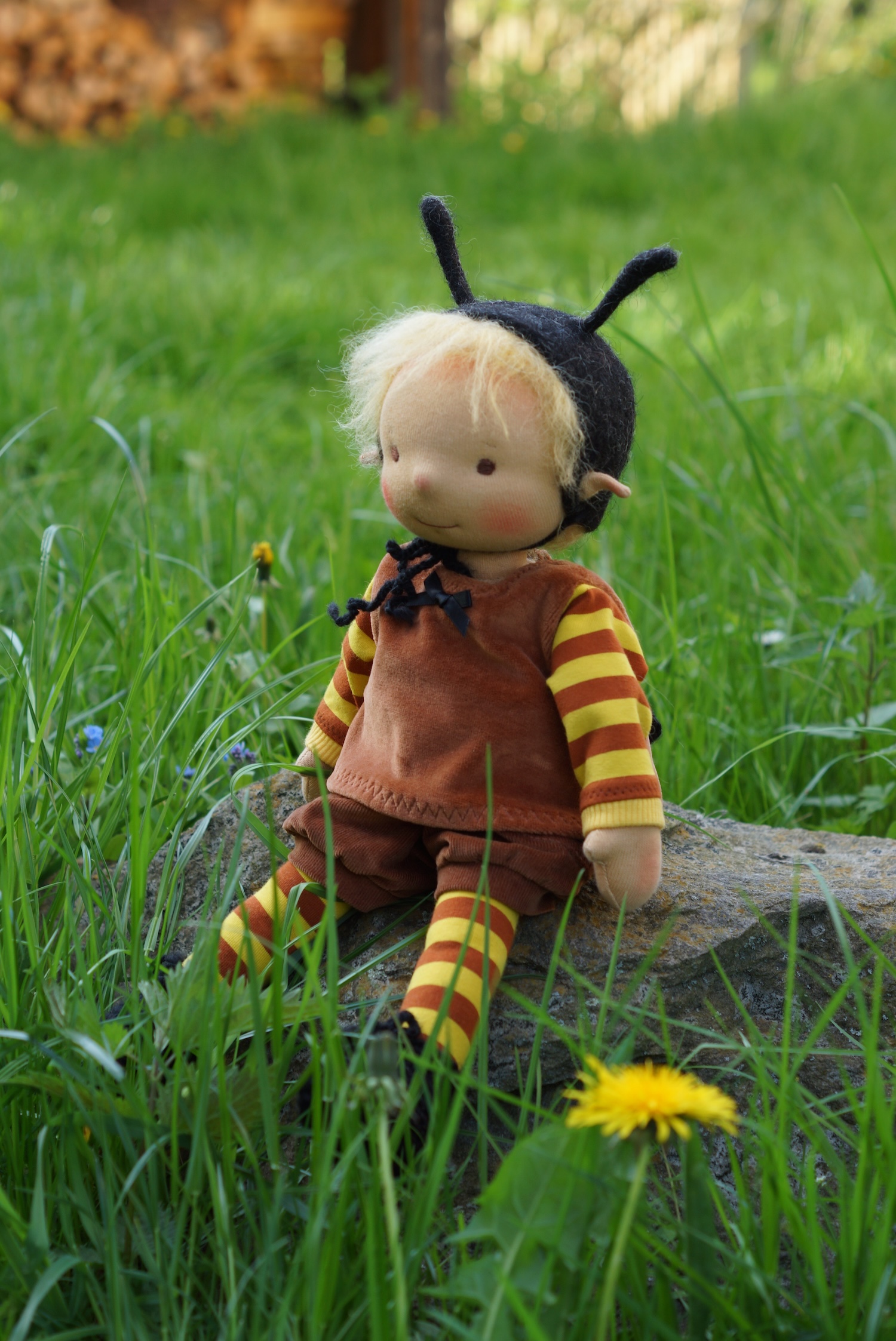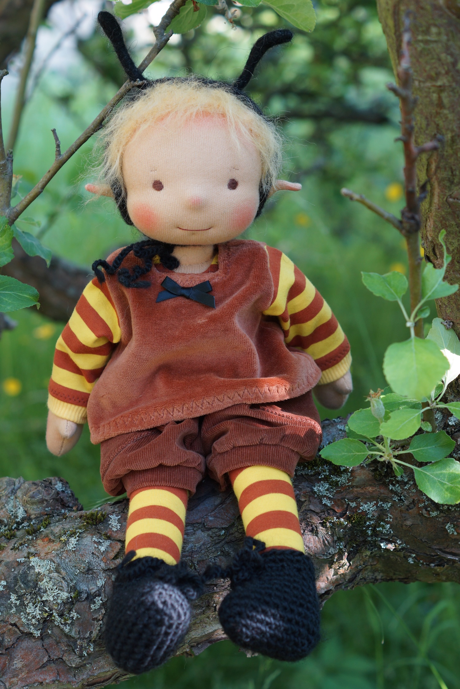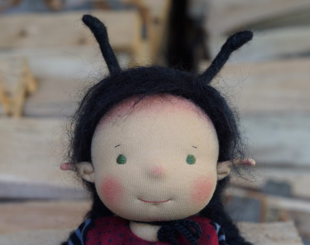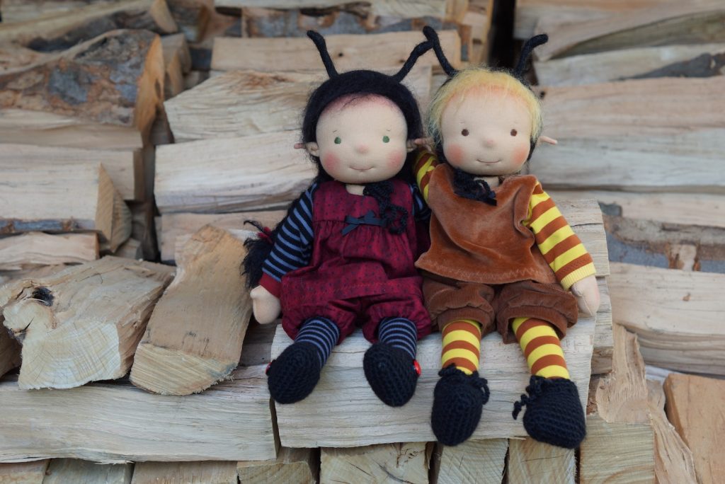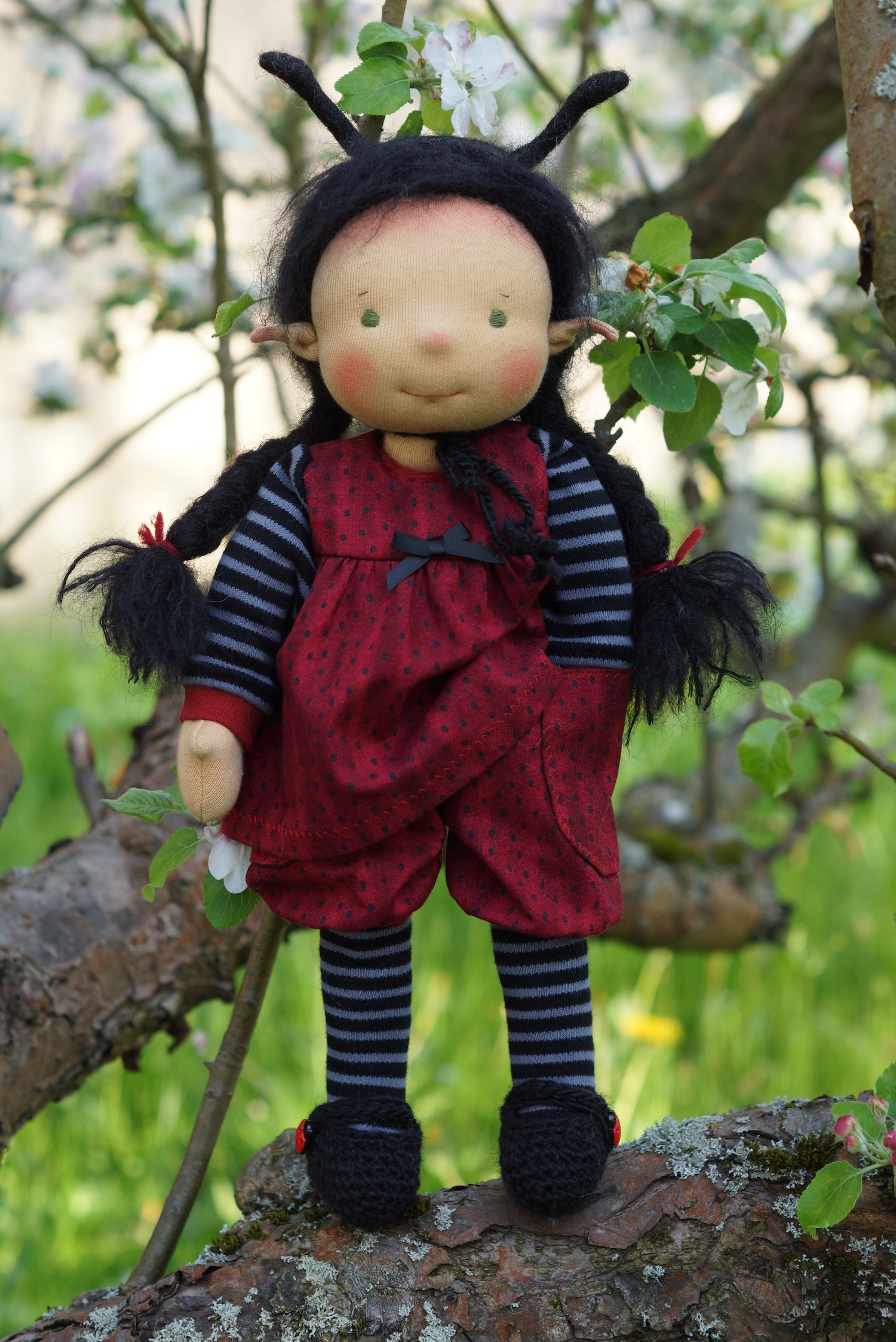 Die beiden Elfenkinder Bienchenben & Marienkäfermalin hatte ich u.a. für das Puppenfestival im Mai genäht. Sie sind mit süßen Elfenohren, gefilzten Fühlern, kleinen Flügelchen & langen Ringelstrümpfen ausgestattet. Für je 300 Euro wurden sie schon adoptiert.