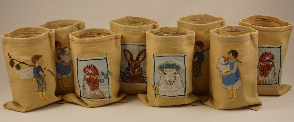 Die bestickten Leinenbeutel mit allerliebsten Motiven von „Nadelfein“ sind ca. 23×30 cm groß und kosten jeweils 25 Euro: