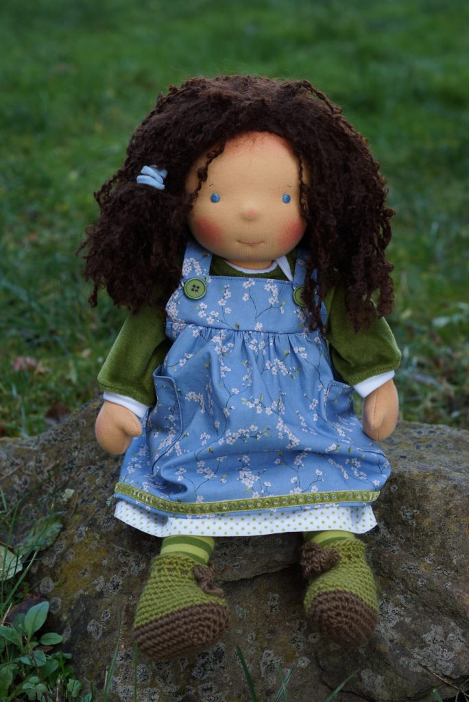 Der dunklebraune Lockenschopf Muriel ist heute Nachmittag erst geboren & somit mein jüngstes Puppenkind. Ihr Kleiderset besteht aus Unterwäsche, Strümpfe, Trägerkleid, Shirt, Unterröckchen und gehäkelten Schuhen. Optional kann sie zusammen mit dem allerliebsten Dreieckstuch & Strickmützchen von meiner Freundin Linda verreisen, das farblich so wunderbar dazu passt. Für 350 Euro bzw 390 Euro (inklusive Strickset) wird sie in ihr neues Zuhause reisen.